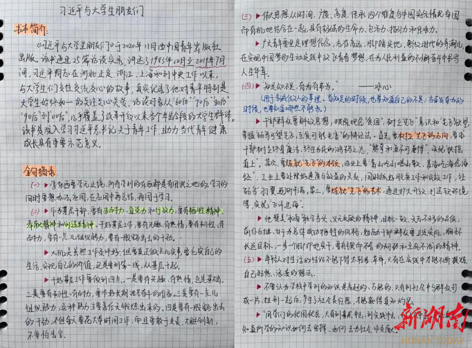 一张张贴在书页之间的便签,一方方挤在留白之中的字迹,一行行认真书写的读书摘要,全景式勾勒出当代青年学子将习近平总书记指明的方向作为人生奋斗坐标,在实现中华民族伟大复兴的时代洪流中踔厉奋发、勇毅前进的青春身影。