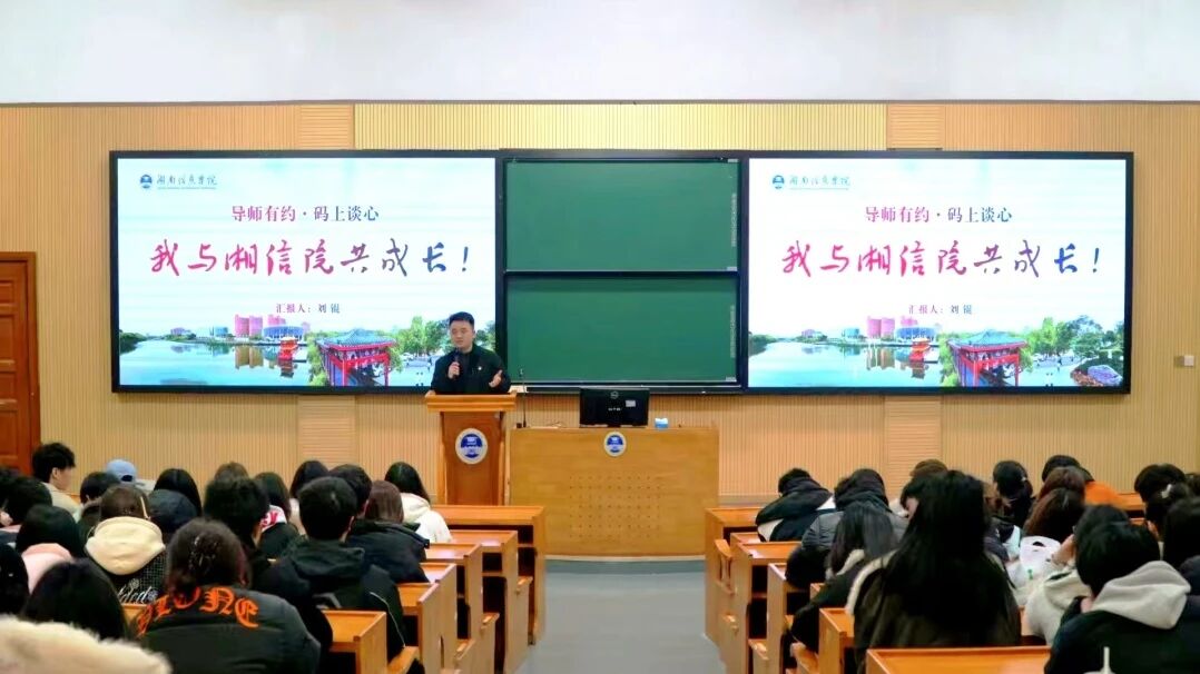 3月17日,学院在第三学术报告厅举行“导师有约·码上谈心 ”分享活动。学院党总支书记刘锟以“我与湘信院共成长”为主题,与在场学子共话校园发展、共赴成长之约。